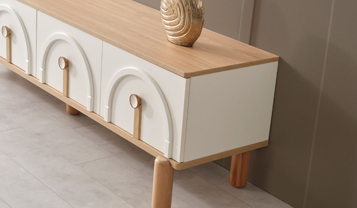 BAHAR TV ÜNİTESİ, depolama özelliği ön planda tutularak tasarlanmış çekmeceli modülleriyle maksimum fonksiyonellik sunuyor.
