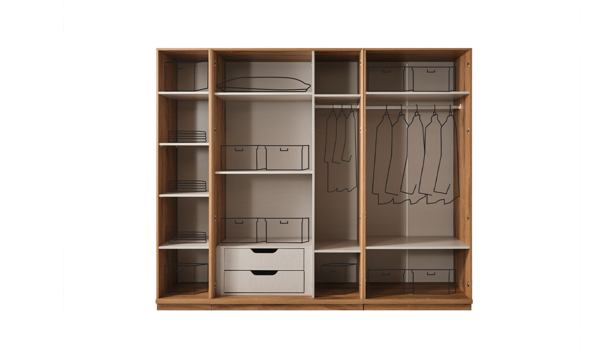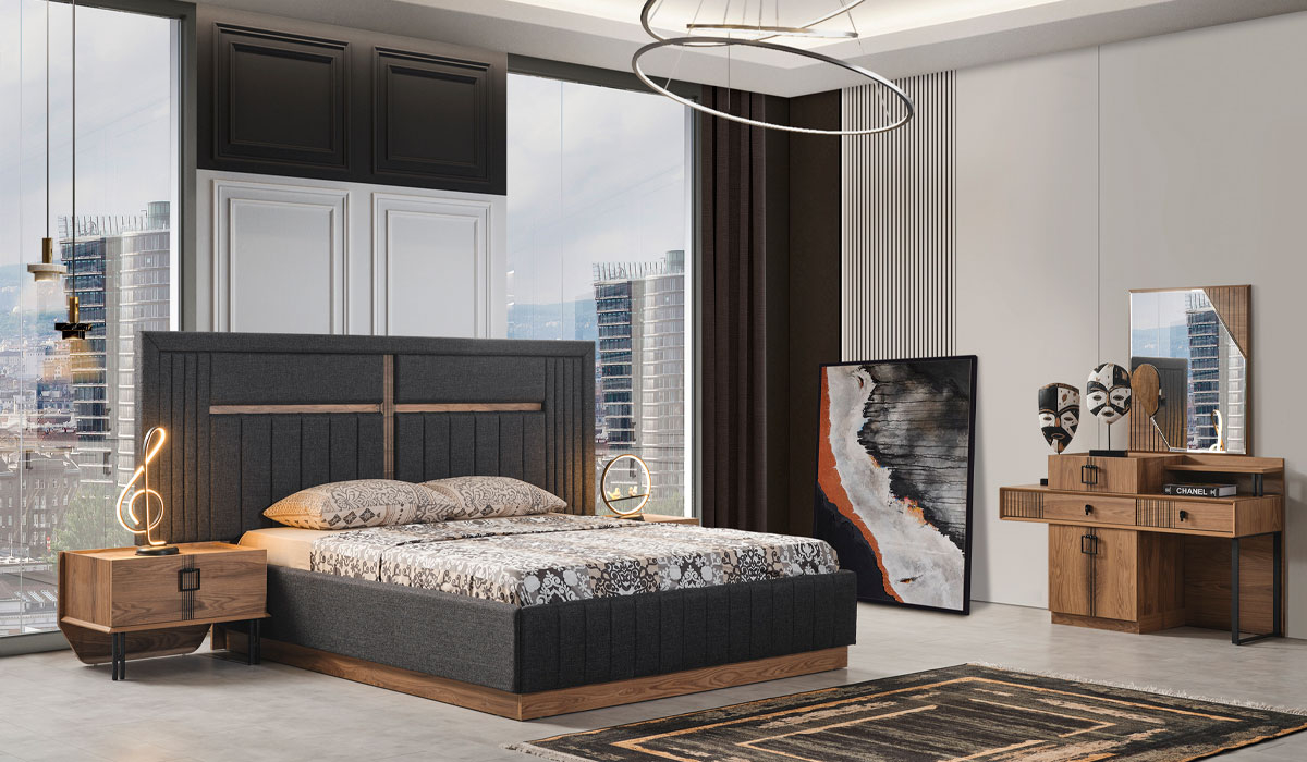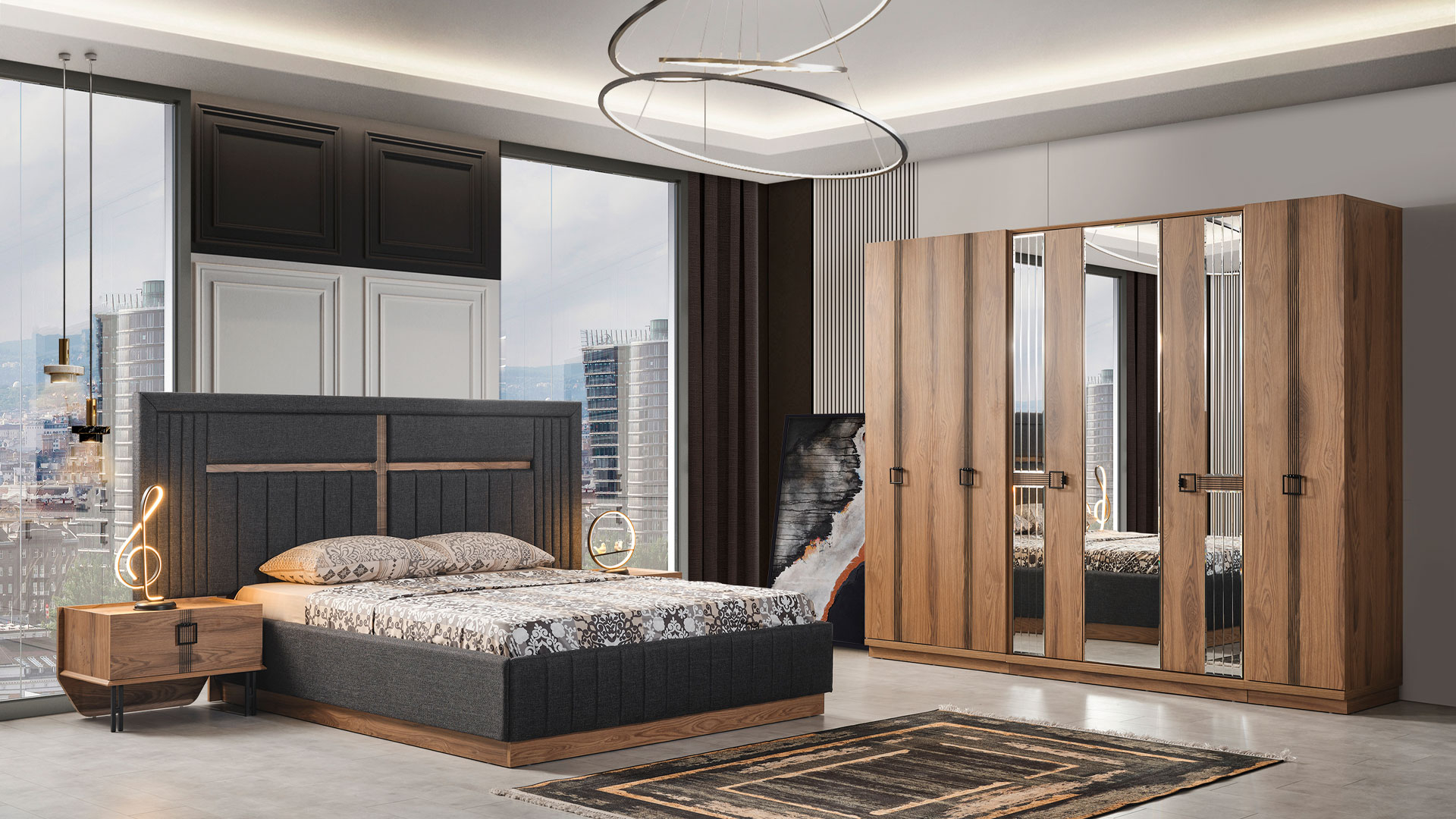 Ceviz, yüzey kombinasyonunun rafine şıklığını yansıtan İZNİK 6 KAPILI YATAK ODASI TAKIMI, modüler tasarım yaklaşımıyla estetik ve fonksiyonelliği bir araya getiriyor. Dikkat çeken yatak başlığı, dolaplarda natürel ayna uygulaması ve detaylarıyla serinin genç tasarım çizgisini yansıtıyor.