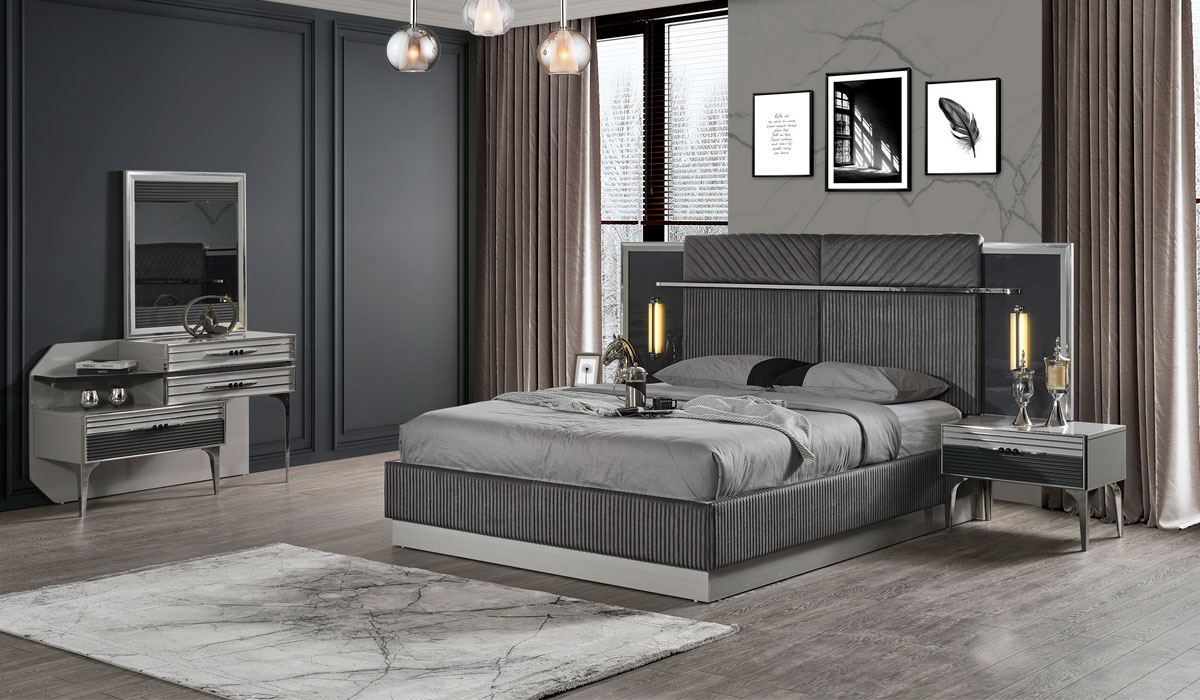 Rafine çizgisi ve lüks tasarım detaylarıyla dikkat çeken MERİÇ YATAK ODASI TAKIMI, yatak odalarına sofistike bir zarafet getiriyor. Renk kombinasyonuyla şık ve huzurlu bir atmosfer yaratırken, tasarımına çağdaş bir zarafet katıyor.