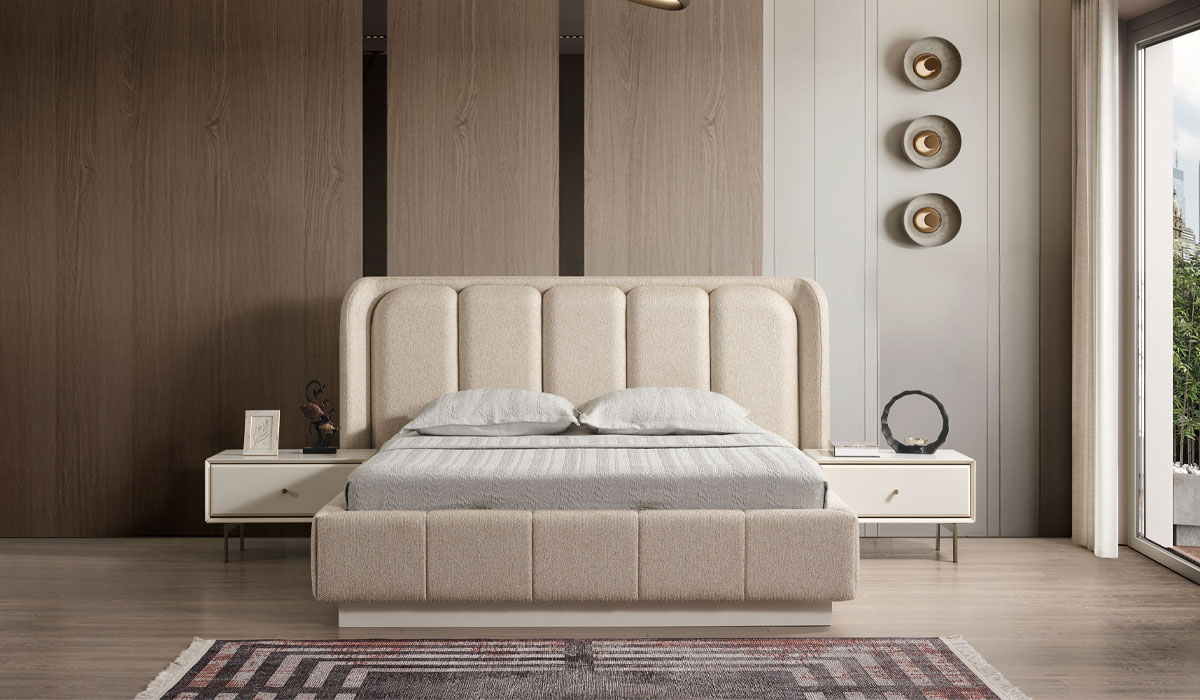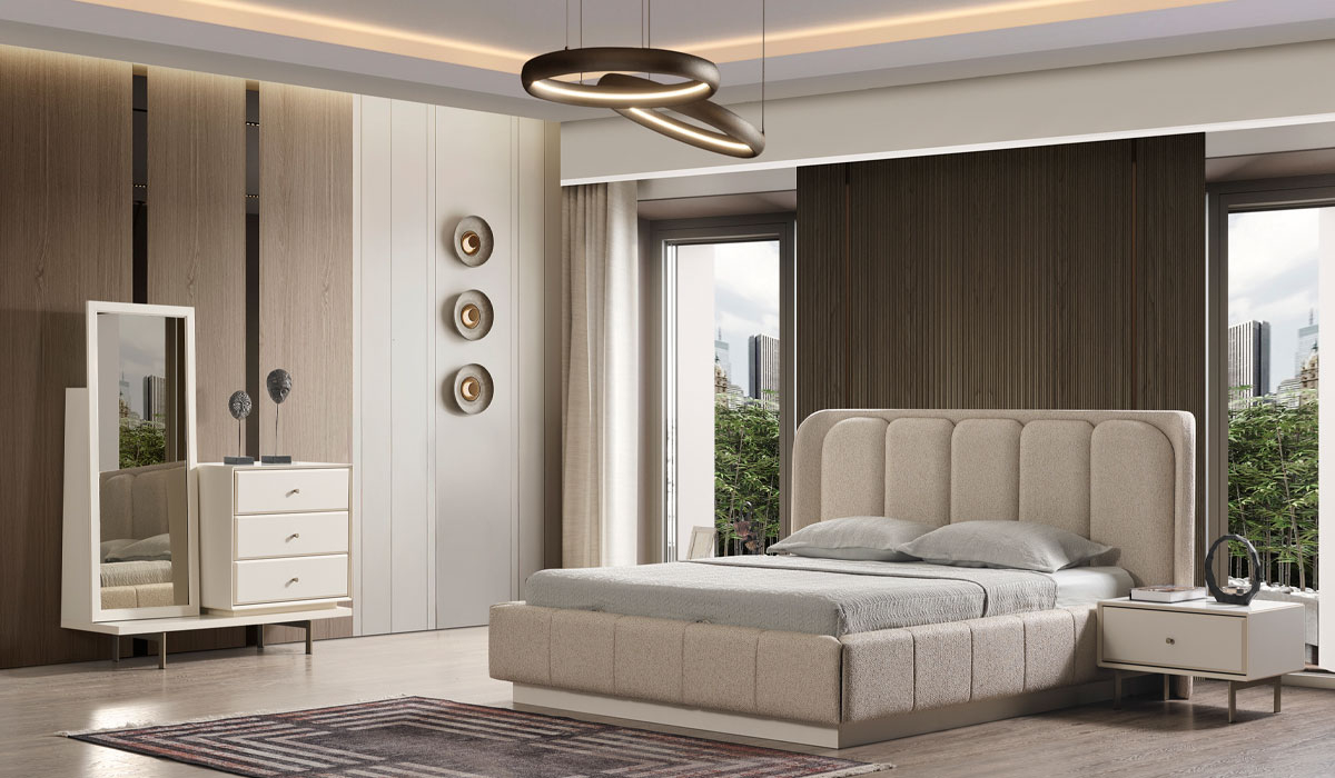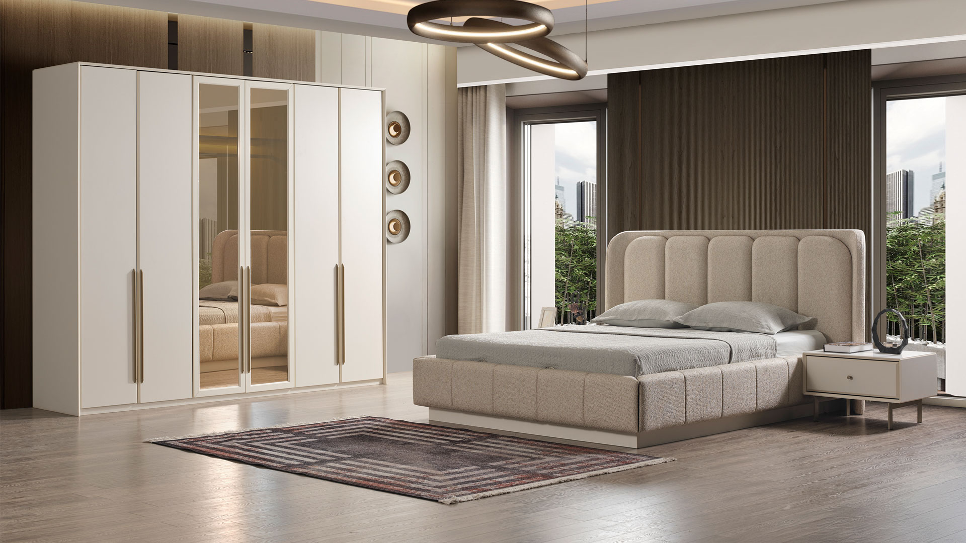 Kırık beyaz renk yüzey kombinasyonunun rafine şıklığını yansıtan MİLANO YATAK ODASI TAKIMI, modüler tasarım yaklaşımıyla estetik ve fonksiyonelliği bir araya getiriyor. Dikkat çeken yatak başlığı, dolaplarda natürel ayna uygulaması ve detaylarıyla serinin genç tasarım çizgisini yansıtıyor.