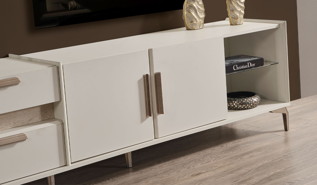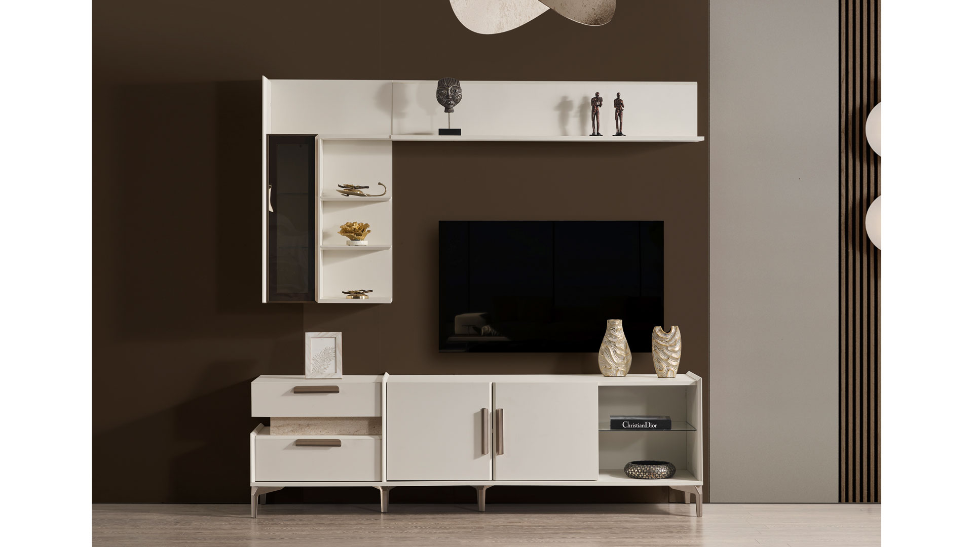 Modüller üzeri deri doku uygulamasıyla ayrıcalıklı VARNA TV ÜNİTESİ,