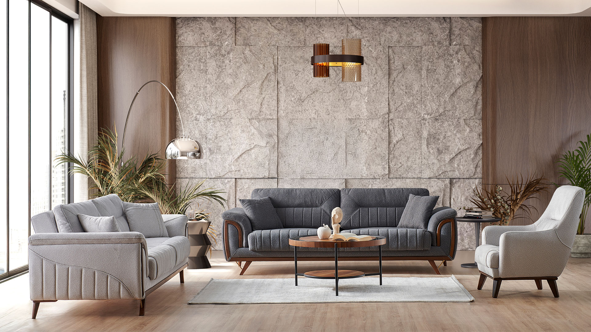 Maksimum rahatlığı hedefleyen çağdaş tasarımını şık detaylarla zenginleştiren DENİZ 3'LÜ KOLTUK, modern estetiği ile dikkat çekerken, kusursuz ergonomisiyle benzersiz bir konfor hissi yaratıyor. Geniş oturum alanının ve sırt minderlerinin yumuşak ve dolgun yapısını, ahşap iskelet ve metal destekli konstrüksiyonu ile buluşturarak uzun ömürlü ve dayanıklı bir konfor deneyimi yaratıyor. Yüksek ayak formu ile temizlik kolaylığı sağlayan DENİZ 3'LÜ KOLTUK, yalın zarafeti, benzersiz konforu ve fonksiyonelliği ile yaşam alanlarını değiştiriyor.