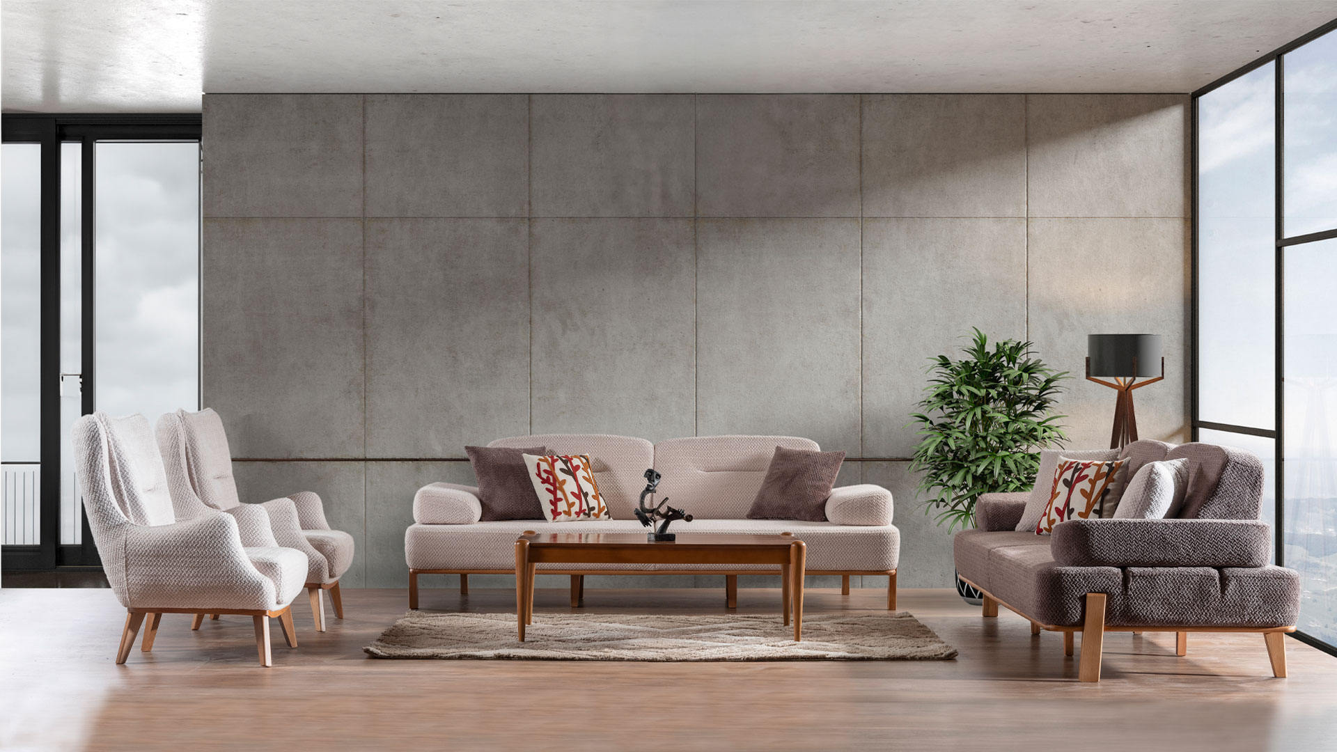 Modern tasarım çizgisini fark yaratan estetik tasarımı ile buluşturan DOLUNAY KOLTUK TAKIMI, dekorasyona rafine bir yorum getiriyor. Yüksek konforlu oturum ve sırt yapısı sayesinde yaşam alanlarındaki rahatlığı maksimum seviyeye taşıyor. 3’lü koltuk modülünün yatak olabilme özelliği ile dikkat çeken estetiğini fonksiyonellikle tamamlıyor. Şık berjer tasarımı ile zengin bir görsel duruş sergilerken, kişisel zevklere hitap ediyor.