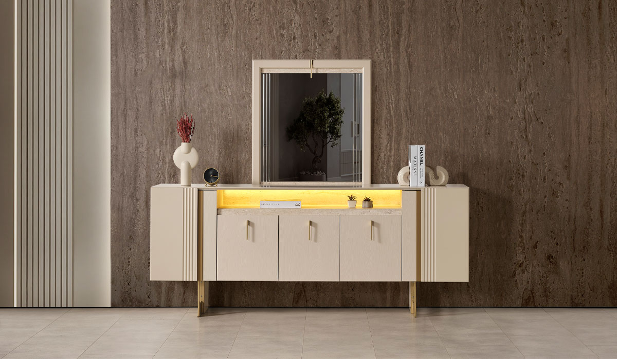 KONSUL : GENİŞLİK : 208 cm DERİNLİK: 44 cm YÜKSEKLİK: 81 cm
