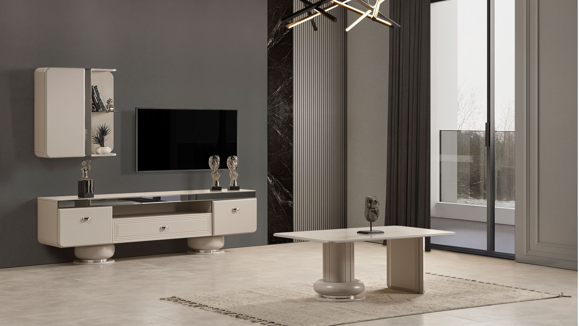 Modüller üzeri deri doku uygulamasıyla ayrıcalıklı VERONA TV ÜNİTESİ,