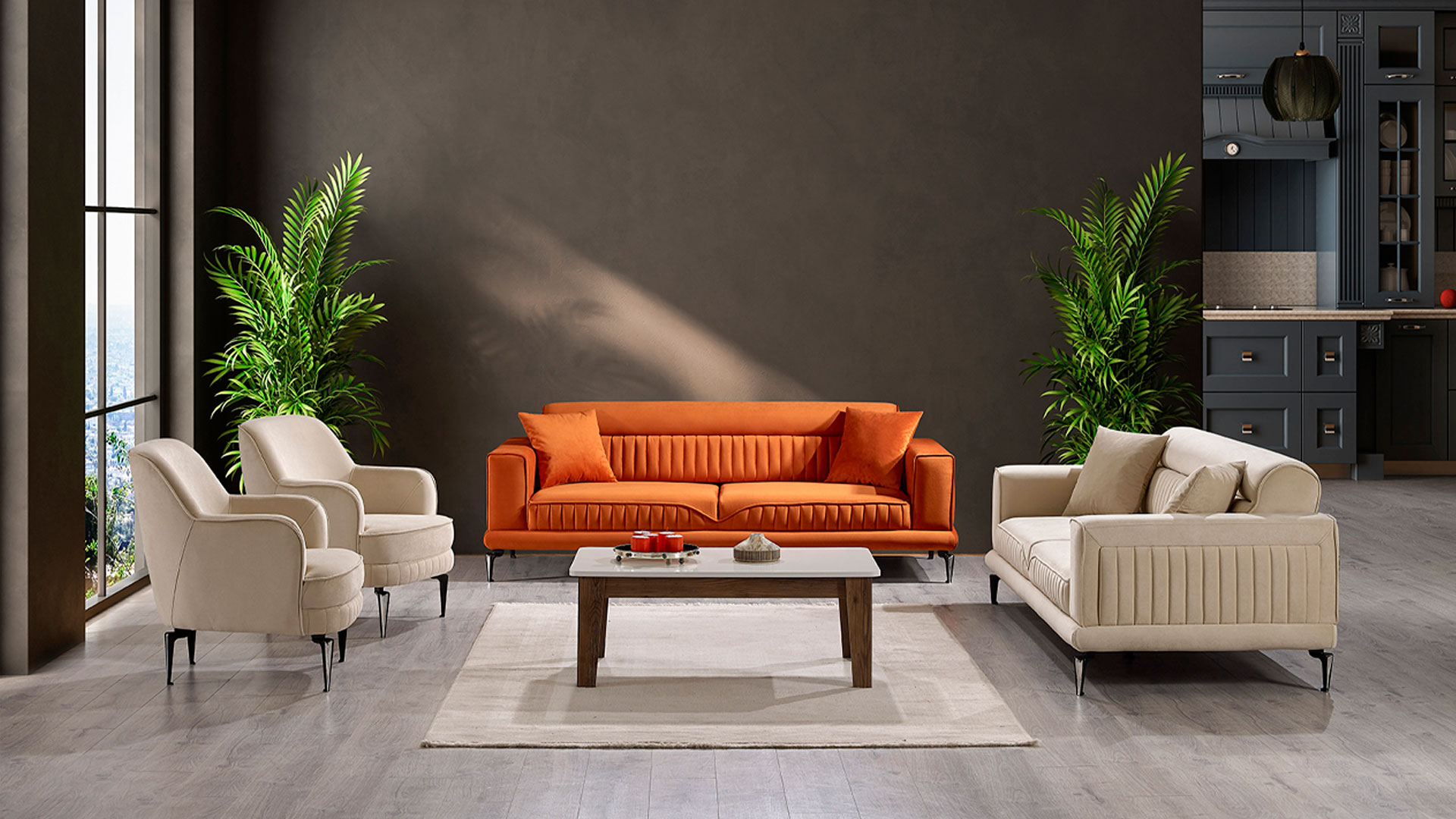 Modern tasarım çizgisini fark yaratan estetik tasarımı ile buluşturan MERLİN KOLTUK TAKIMI, dekorasyona rafine bir yorum getiriyor. Yüksek konforlu oturum ve sırt yapısı sayesinde yaşam alanlarındaki rahatlığı maksimum seviyeye taşıyor. 3’lü koltuk modülünün yatak olabilme özelliği ile dikkat çeken estetiğini fonksiyonellikle tamamlıyor. Şık berjer tasarımı ile zengin bir görsel duruş sergilerken, metal ayak alternatifi ile kişisel zevklere hitap ediyor.
