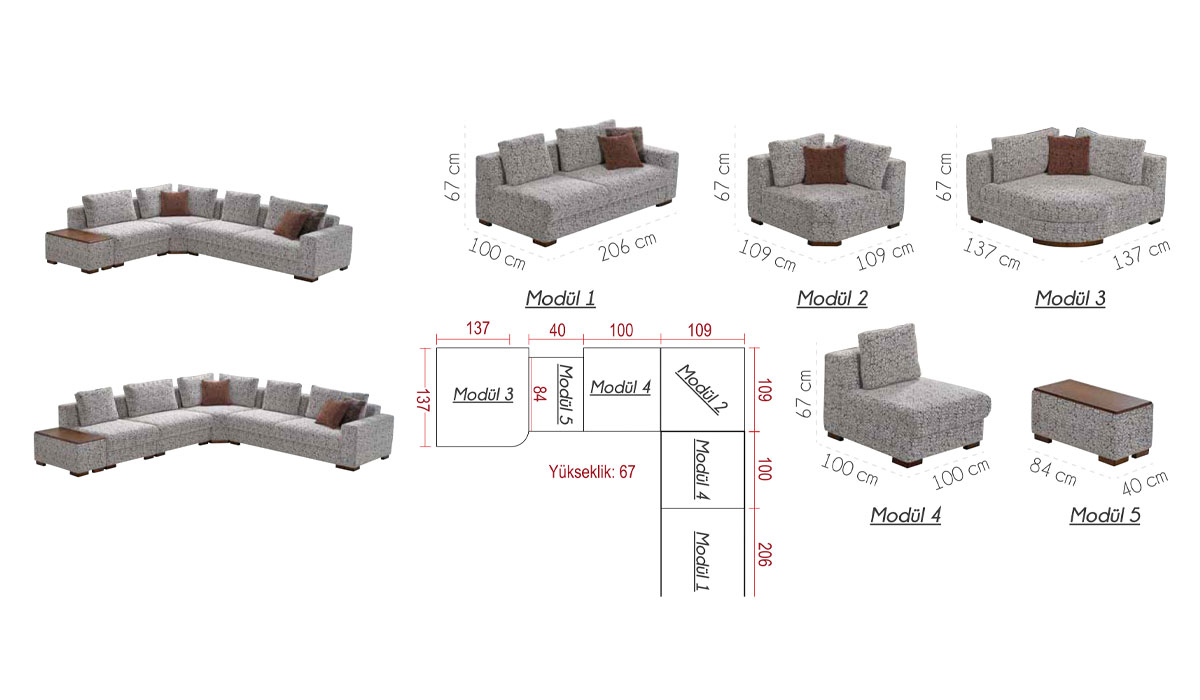 Genişlik: 385 x 415 cm Derinlik: 100 cm Yükseklik: 70 cm