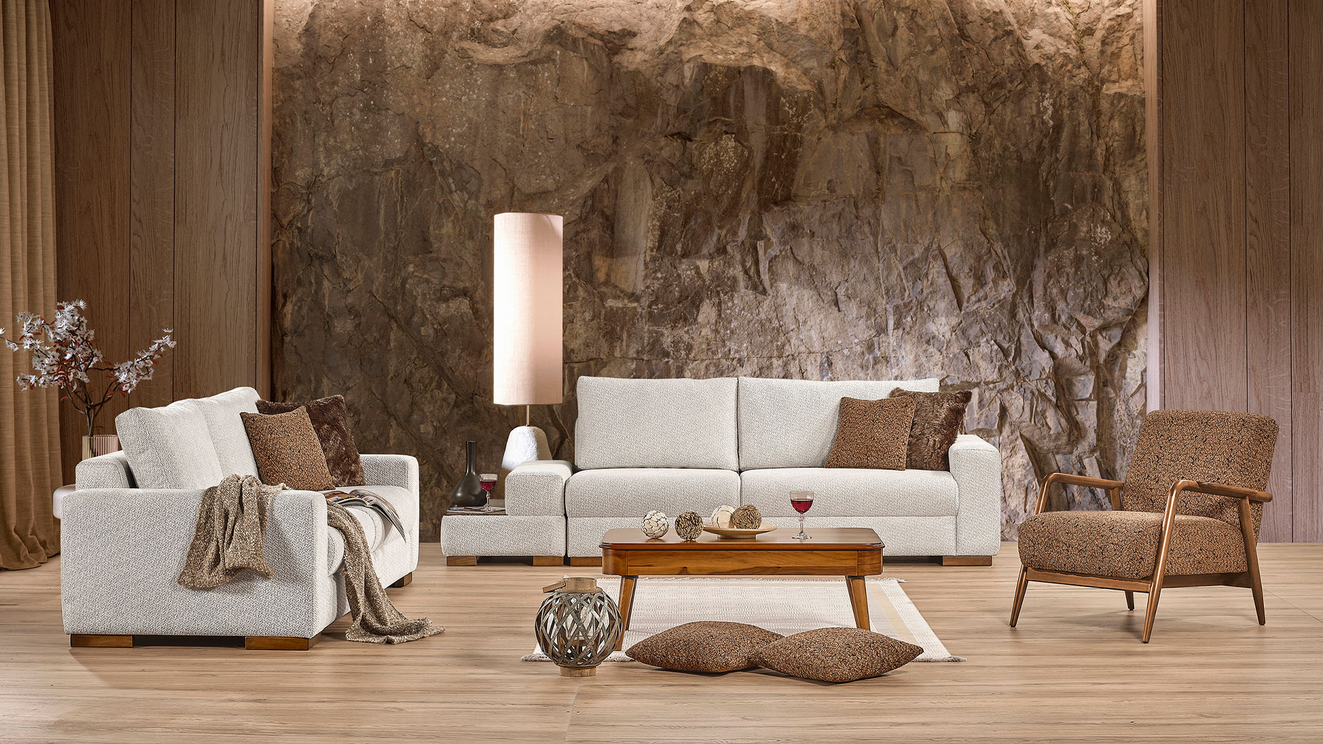 Modern tasarım çizgisini fark yaratan estetik tasarımı ile buluşturan BERLİN KOLTUK TAKIMI, dekorasyona rafine bir yorum getiriyor. Yüksek konforlu oturum ve sırt yapısı sayesinde yaşam alanlarındaki rahatlığı maksimum seviyeye taşıyor. 3’lü koltuk modülünün yatak olabilme özelliği ile dikkat çeken estetiğini fonksiyonellikle tamamlıyor. Şık berjer tasarımı ile zengin bir görsel duruş sergilerken, kişisel zevklere hitap ediyor.