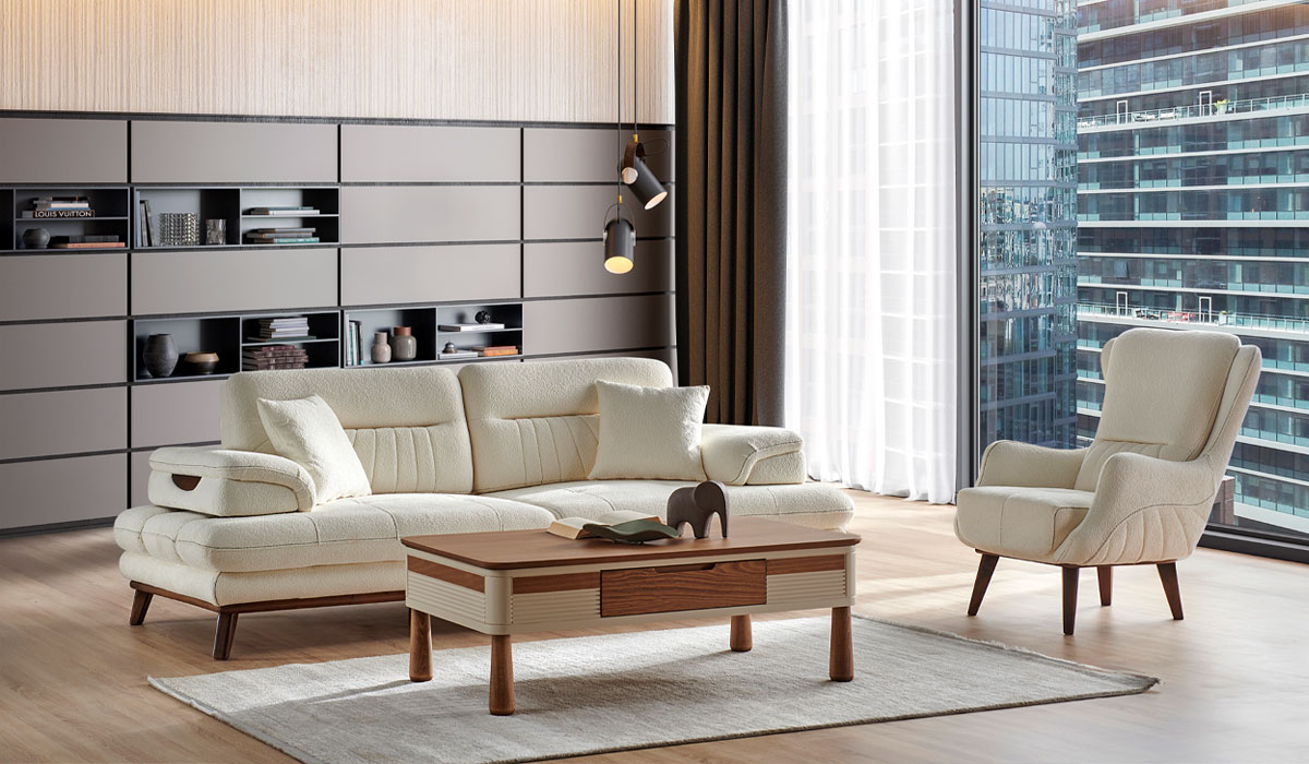 Modern tasarım çizgisini fark yaratan estetik tasarımı ile buluşturan LAVİNYA KOLTUK TAKIMI, dekorasyona rafine bir yorum getiriyor. Yüksek konforlu oturum ve sırt yapısı sayesinde yaşam alanlarındaki rahatlığı maksimum seviyeye taşıyor. 3’lü koltuk modülünün yatak olabilme özelliği ile dikkat çeken estetiğini fonksiyonellikle tamamlıyor. Şık berjer tasarımı ile zengin bir görsel duruş sergilerken, metal ayak alternatifi ile kişisel zevklere hitap ediyor.
